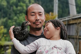 京都府認定のブランド地鶏を生産している流胤の篠山さん。ほんのり甘い真っ白な脂身を持つ、地鶏肉を生産販売しています。
