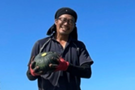 石垣島でパイナップル・カボチャをメインに作っていらっしゃいます。屋号の「てぃだぬファーム」は、てぃーだ(太陽)と、ふぁ(子)という文字をつなげています。農作物は太陽の子供のようなものであり、そんな太陽の恵みを活かしてたくさんの農作物(子)を作るという意味を込めていらっしゃいます。