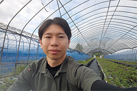 就農6年目、法人化3年目。キュウリをメインに栽培。冬場は菜花、カブ、ブロッコリー、ニンニクなどの栽培を行っています。市場で自己ブランド農産物の信用を高めながら、「3世代が楽しめる,いつもの野菜をいつもの食卓へ」を掲げ、農産物の安定供給しようとしている。販売先は、主に関西方面ですが、JAや直売など、積極的に開拓しています。